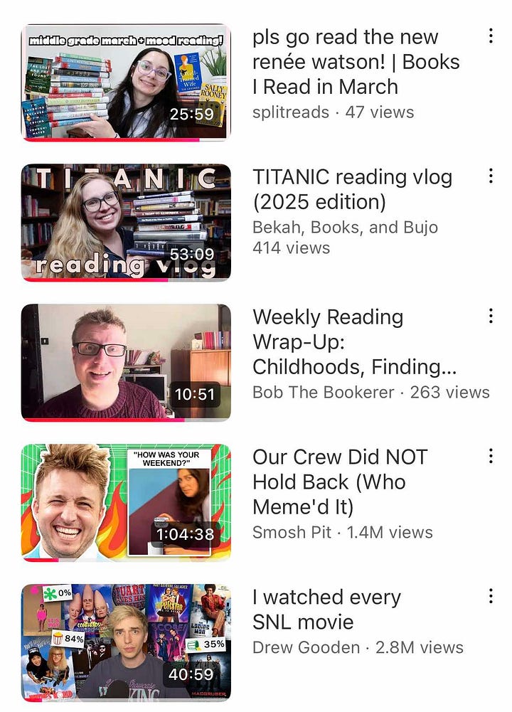 مواصلة الكتابة في النشرة دي تحدي بيني ونفسي، ورغم انشغالي، عايزة أرجع أكتب كل أسبوع تاني. بمر بتحولات جديدة في الحياة: فيه تغييرات جديدة في الشغل أثرت على وقت فراغي القليل بالفعل وبحاول أنقي وأختار بين كل هواياتي وأنشطتي عشان أشوف هتخلى عن ايه وهحافظ على ايه. السنة دي ممكن تكون من أبطأ السنين في القراءة وإنجاز خطط الكتب، بس على الأقل مبطلتش أقرأ، لأني حاسة أنه لو سبت نفسي أسبوع مثلا من غير قراءة مش عارفة هقدر أرجع تاني ولا لأ.
